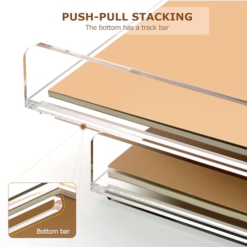 【Organiseur de comptoir en acrylique】: Le plateau en acrylique est idéal pour organiser votre comptoir de manière professionnelle, Contient 2 plateaux d’un étage, qui se chevauchent en une seconde, idéaux pour contenir du papier de taille lettre/A4, des dossiers, des fournitures de bureau et des accessoires de bureau. 【Conception modulaire】: Utilisez le plateau empilable réutilisable pour ranger les documents en désordre, les enveloppes, les papiers à en-tête, les notes et autres accessoires sur le bureau, ce qui peut rendre le bureau organisé. La conception empilable vous permet de combiner librement les couches, de stocker plus de documents et de le placer de manière stable sur le bureau. Plateau en acrylique transparent pour classement de fichiers 】: un matériau transparent qui ressemble à du cristal et crée une atmosphère haut de gamme. Ce plateau dégage une note professionnelle et permet de retrouver rapidement les objets rangés. Sa transparence le rend très délicat et beau. 【Robuste et Durable】: Fabriqué en matériau organique PMMA de haute qualité, poli à la main, avec des coins arrondis, la base est antidérapante, pour garantir qu’elle ne glissera pas facilement sur le bureau, en tant qu’organisateur de documents de bureau, pour améliorer la qualité de l’espace. 【 Largement utilisé】 : les plateaux en acrylique constituent un excellent outil de rangement et d’organisation. Ils sont parfaits pour les salles de classe, les bureaux à domicile et autres lieux de travail. Le plateau est parfait pour ranger et organiser les fournitures de bureau telles que le papier de construction, les manuels scolaires, les livres de littérature, les accessoires de bureau, les documents d’affaires et bien plus encore.