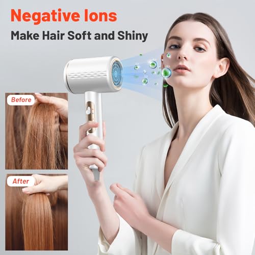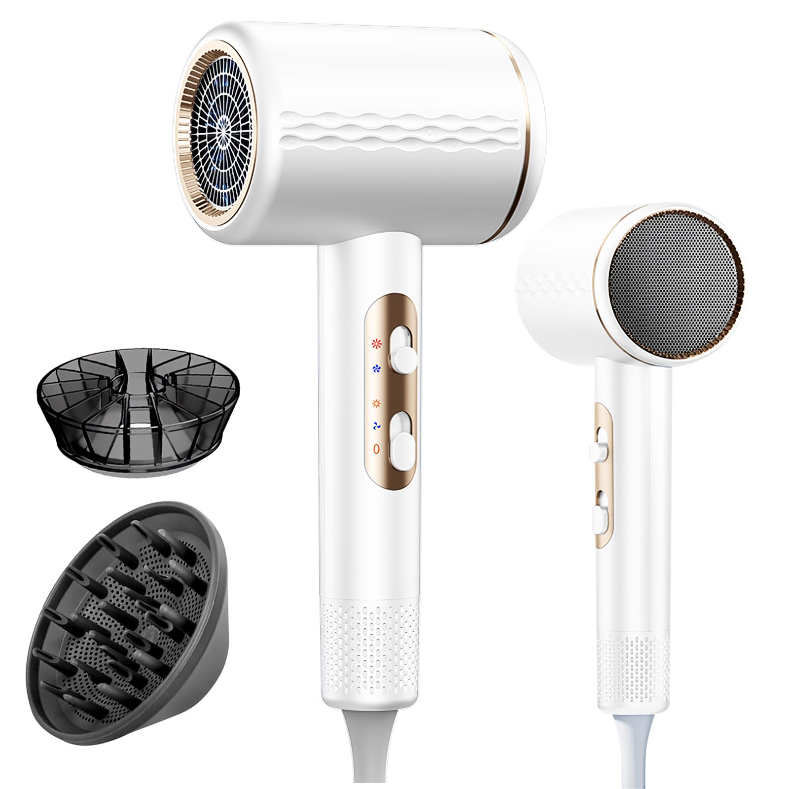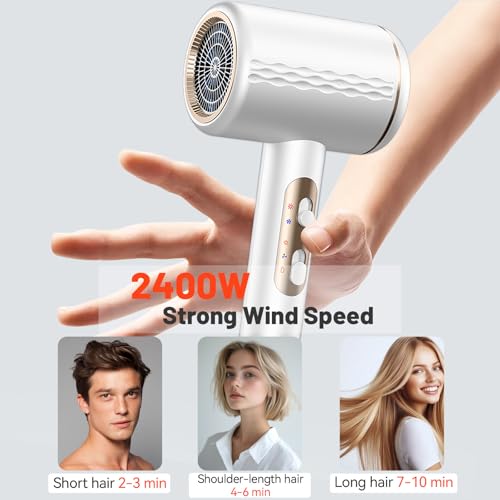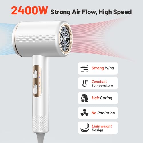 Sèche-cheveux ionique professionnel, 2400 W avec bouton chaud/froid, 3 réglages de température, diffuseur inclus, Léger Sèche-cheveux pour Salon à Domicile Voyage Femme Enfants (Blanc)