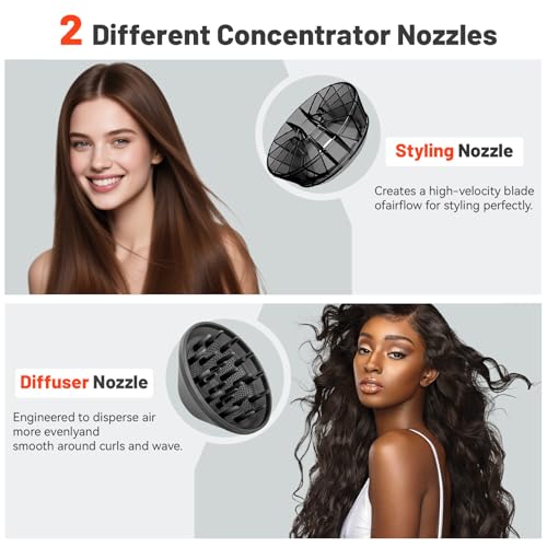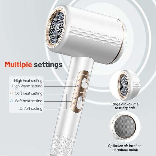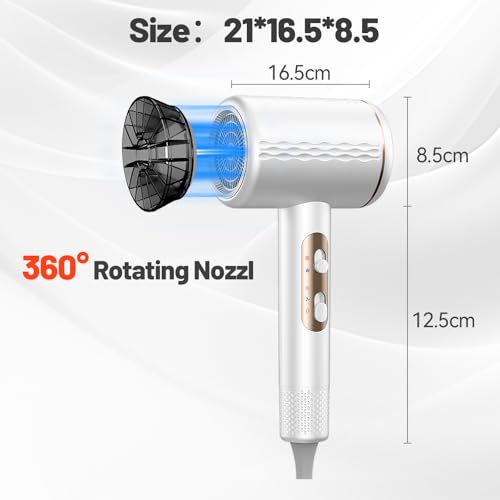 【3 températures et 2 vitesses】 – Le sèche-cheveux dispose de 3 réglages de température et de 2 vitesses de vent au choix, et les boutons de refroidissement/chauffage sont faciles à utiliser, de sorte que vous pouvez facilement sécher vos cheveux selon vos souhaits, répondant à la fois à la maison…