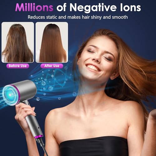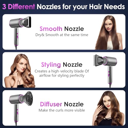 【Sèche-cheveux ionique haute performance】 Ce sèche-cheveux de voyage d’une puissance maximale de 2400 watts est irremplaçable pour sécher vos cheveux. Le sèche-cheveux ionique offre un séchage rapide, une concentration élevée d’ions négatifs, un contrôle intelligent de la température, réduit les dommages causés aux protéines, maintient l’humidité naturelle des cheveux et élimine les pointes fourchues, ce qui peut rendre les cheveux doux et lisses 【2 températures, 3 vitesses】 Ce Seche Cheveux a deux températures au choix : air chaud et air froid, répondant à toutes les exigences d’un usage domestique et professionnel en salon. Chaque mode dispose de trois niveaux de vitesse du vent réglables, que ce soit en hiver ou en été, que vous ayez les cheveux longs ou courts, vous pouvez choisir la bonne vitesse du vent et la bonne température en fonction de vos besoins personnels 【Conception pliable et crochet】 Il s’agit d’un sèche-cheveux pliable avec une poignée qui peut être pliée à 90 °, facile à transporter et à ranger, ne prend pas de place à la maison et convient aux voyages. Le crochet fourni avec le sèche-cheveux peut accrocher le sèche-cheveux au mur pour un accès facile 【Combinaison de plusieurs accessoires】 3 types de buses sont disponibles : buse lisse, buse coiffante et buse de diffusion. La buse lisse concentre le flux d’air pour rendre les cheveux lisses et adoucis. L’embout diffuseur convient aux cheveux ondulés et augmente la définition des boucles. La buse coiffante peigne les cheveux et génère un flux d’air à grande vitesse pour un coiffage parfait 【Dispositif de protection contre la surchauffe】 Ce Seche Cheveux dispose d’une fonction intelligente de protection à température constante pour protéger vos cheveux. Après test, une fois que la température de ce sèche-cheveux à température constante dépasse 95°, le fil chauffant sera immédiatement coupé pour protéger votre sécurité et garder vos cheveux nourris, lisses et brillants
