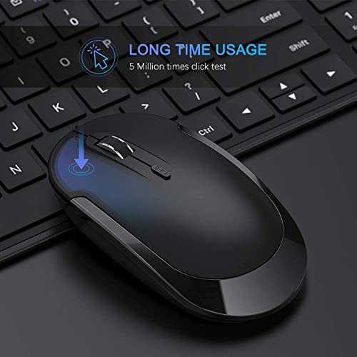 Clavier et souris sans fil : Il suffit de brancher le récepteur USB sur un port USB de votre ordinateur pour que le clavier et la souris soient prêts à fonctionner. Clavier et souris rechargeables : Le clavier et la souris sont tous deux rechargeables. L’interrupteur marche/arrêt et le mode veille intelligent permettent également d’économiser de l’énergie. Plus besoin de remplacer les piles. Clavier-souris ultra-mince : Le clavier et la souris présentent un design élégant, 1/3 plus petit que les claviers traditionnels. Malgré sa taille portable, il dispose de la plupart des fonctions dont vous avez besoin, comme le verrouillage numérique, le contrôle du volume, le pavé numérique, la calculatrice et quelques touches d’accès rapide pour votre usage quotidien. Parfait pour un espace de bureau limité. Frappe et clics silencieux : Le profil bas et les touches à ciseaux garantissent une frappe douce et silencieuse. Les boutons de la souris sont également conçus pour un clic silencieux, ce qui vous offre une expérience plus confortable. Compatibilité : Ce clavier et cette souris sont entièrement compatibles avec Windows XP/7/8/10/11 et les versions ultérieures.