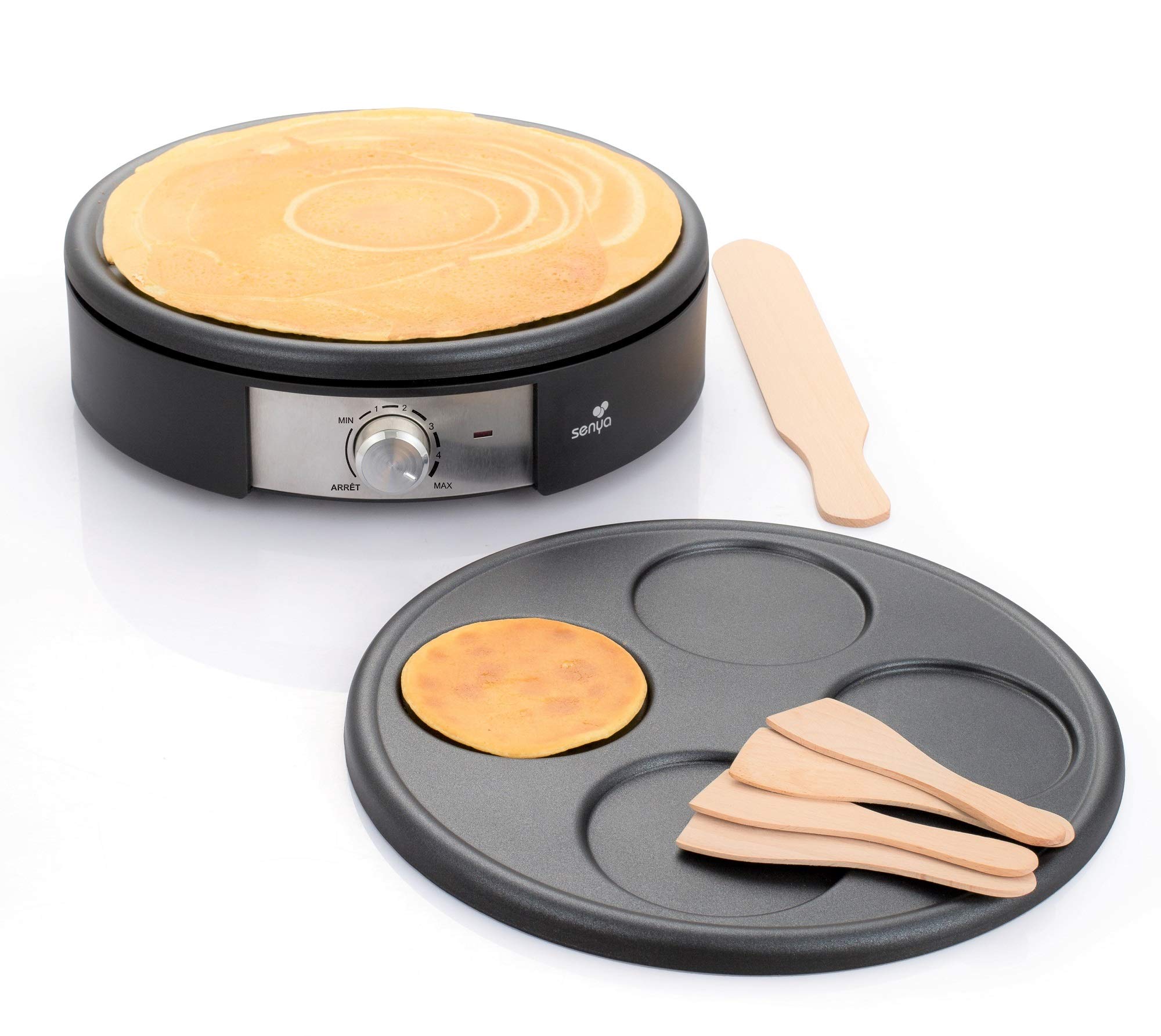 SENYA – Crêpière électrique – 2 Plaques Interchangeables en Fonte d’Aluminium – 1500W – Cuisson Rapide – Antiadhésif & Sans PFOA – SYCK-CV026, Noir