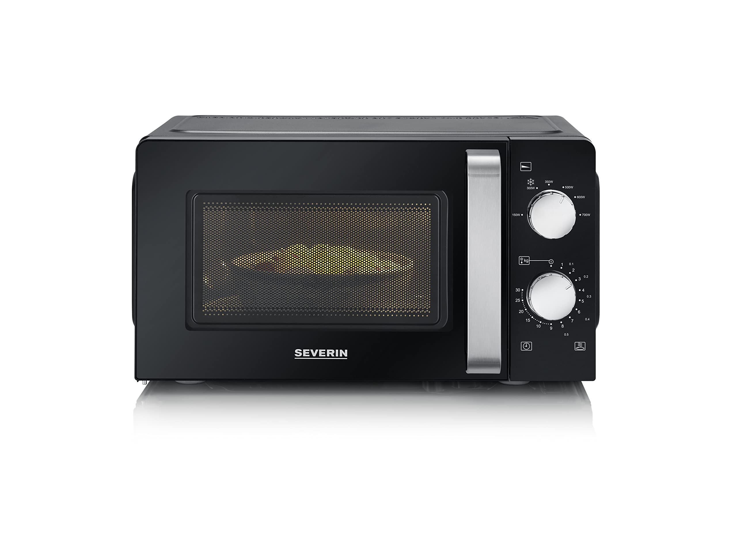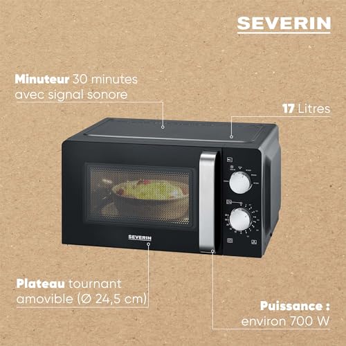 SEVERIN Four à micro-ondes 17 L, Four micro-onde 700 W pour décongeler, chauffer et réchauffer, Micro-onde avec 6 niveaux de puissance, Minuteur 30 min, Plateau tournant (Ø 24,5 cm), Noir, MW 7886