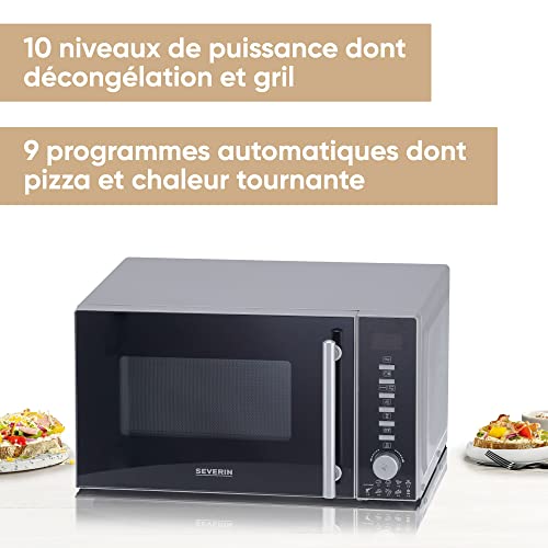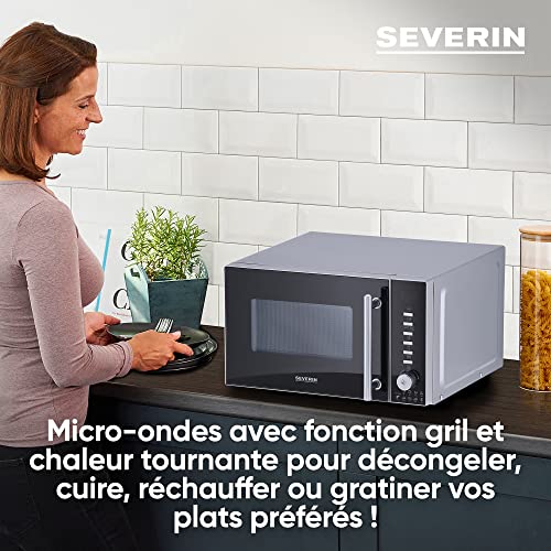 Des résultats croustillants – Les fonctions micro-onde, gril et chaleur tournante sont programmables ensemble ou séparément. Le micro onde petite taille d’un grand espace de cuisson avec plateau tournant amovible (Ø 24,5cm) Cuisiner des repas variés – Idéal pour cuire, rôtir ou gratiner vos plats préférés, ce micro onde 20 L avec gril et chaleur tournante dispose de 9 programmes de cuisson automatiques, dont la fonction pizza Micro ondes multifonction – Véritable substitut au mini four traditionnel, ce micro onde avec gril et chaleur tournante s’adapte à vos envies. Son mode décongélation est réglable en fonction du temps désiré jusqu’à 45 minutes maximum Fonctions pratiques – Ce four micro onde dispose d’un affichage numérique avec écran LCD, d’un minuteur numérique avec signal sonore et d’une touche rapide pour un démarrage à pleine puissance Détails – SEVERIN Four à micro-ondes pour décongeler, réchauffer, cuire, rôtir ou gratiner, 10 niveaux de puissance, 9 programmes automatiques et minuteur de 95 min réglables, (LxlxH): 45,7 cm x 40 x 26,3 cm Qualité allemande – Garantie 2 ans – Les produits SEVERIN sont performants par leur conception, leur facilité d’utilisation et leur durée de vie