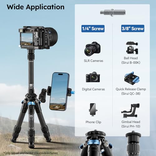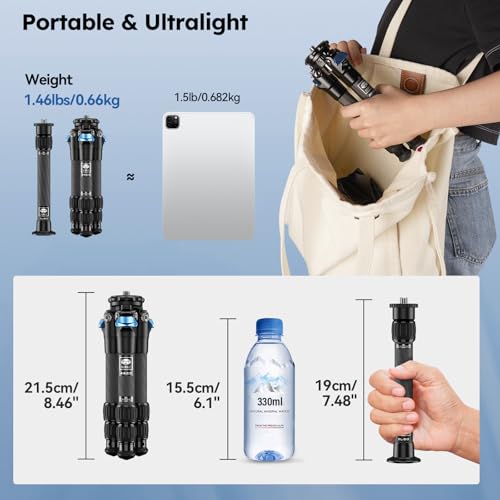 【Portable, léger et compact】Fait en fibre de carbone de première qualité, le set de trépieds SIRUI AM-223 est léger 0,65kg/1,43lbs, durable et résistant à la corrosion, et peut supporter jusqu’à 33,07lbs/15kg de charge. L’ensemble est rétractable et pliable, il s’intègre donc parfaitement dans le sac de transport des photographes sans prendre trop de place. 【Colonne centrale détachable】La colonne en carbone du SIRUI SL-100 peut être soit connectée à un trépied pour une hauteur supplémentaire en cas de besoin, soit détachée en quelques secondes pour un poids plus léger. 【Hauteur de travail flexible】Avec la colonne centrale détachable du SL-100 et les jambes extensibles, la hauteur de travail peut être ajustée de 58 mm extrêmement bas à 350 mm + 310 mm. Convient pour la photographie en intérieur et en extérieur. 【Grande compatibilité】Les deux trépieds AM-223 et la colonne SL-100 sont équipés de vis convertibles de 1/4 pouce et 3/8 pouce, ce qui les rend compatibles avec divers équipements de photographie, comme les bras flexibles, les microphones, etc. 【Angle de la jambe réglable】photographes peuvent régler l’angle de la jambe avec le système de réglage semi-automatique de l’angle. 【Conception antidérapante】Avec ses pieds en caoutchouc résistant à l’usure et ses pointes métalliques rétractables, le trépied AM-223 peut se tenir fermement sur divers terrains. 【Les verrous de jambe demi-tour】Les jambes du trépied peuvent être étendues facilement en tournant les verrous de jambe en caoutchouc en quelques secondes. 【Nurturing Design】Un port d’accessoires de 1/4 de pouce est prévu pour connecter des accessoires sans clips ou pinces ; une clé Allen est fournie pour un réglage rapide sur place. 【Spécifications】 [AM-223] Sections : 3 |Max. Diamètre du tube : 0.87” 22mm |Min. Diamètre du tube : 0.63” 16mm |Hauteur min. : 2.3” 58mm |Hauteur max. : 13.8” 350mm |Hauteur rétractée : 8.5” 215mm |Poids : 0.53kg/1.17lbs |Charge max. Charge : 15kg/33.1lbs. 【Spécifications】 [SL-100] Sections : 2 |Matériau : Fibre de carbone. |Max. Diamètre du tube : 0.87” 22mm |Diamètre du tube : 0.75” 19mm |Hauteur min. : 7.48” 190mm |Hauteur max. Hauteur : 12.20” 310mm |Hauteur rétractée : 7.48” 190mm |Poids : 0.13kg/0.29lbs |Charge max. Charge maximale : 12kg/26.46lbs.