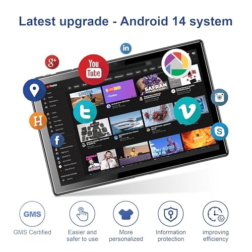 Grand écran : La tablette Tibuta Smartpad A40 dispose d’un écran de 10,1 pouces avec une résolution de 1280×800 pixels pour un affichage clair et net. Longue autonomie : grâce à la batterie de 5000mAh, la tablette tient toute la journée et permet de streamer, de surfer ou de jouer pendant des heures en déplacement ou à la maison. Beaucoup d’espace de stockage : la mémoire d’exploitation 6G (2 Go + 4 Go de mémoire intelligente) et la mémoire interne de 64 Go offrent suffisamment d’espace pour les applications, les vidéos, les photos et la musique. La mémoire peut également être étendue avec une carte microSD. Performances quadricœur : le puissant processeur quadricœur garantit une utilisation rapide et sans à-coups pour jouer, diffuser ou travailler de manière productive sans problème. Double appareil photo : l’appareil photo arrière de 5MP et l’appareil photo avant de 8MP permettent de prendre facilement des photos et des vidéos lors des déplacements ou pour les appels vidéo.