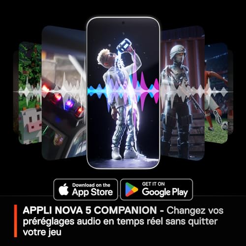 PLUS DE 100 PRÉRÉGLAGES AUDIO – Préréglages audio sur mesure pour des jeux comme GTA V, FIFA, Call of Duty, avec l’appli Arctis Nova 5 BATTERIE DE 60H – Jouez plus longtemps avec la batterie nouvelle génération : 8h/jour toute la semaine. 6h d’utilisation en 15 mn avec la charge rapide USB-C QUICK-SWITCH SANS FIL – Basculez entre jeu 2,4GHz et Bluetooth 5.3 d’un geste pour prendre un appel ou écouter un média. Bip de notification pour être informé lors du jeu AUDIO HAUTE FIDÉLITÉ – En métal terrestre rare, les haut-parleurs magnétiques en néodyme créent un son ultra-détaillé d’aigus clairs, de médiums précis et de basses profondes MICRO NOUVELLE GÉNÉRATION – Notre micro rétractable ClearCast 2.X offre 2x la clarté avec un chipset haute bande passante (audio 32KHz/16Bit) TRANS-PLATEFORME – Passez entre PlayStation, PC, Switch, Meta Quest, téléphones ou tablettes avec un dongle USB-C compact CONTRÔLES SUR L’ÉCOUTEUR – Tous les boutons nécessaires sont sur le casque : alimentation, volume et Quick-Switch pour passer au Bluetooth