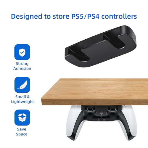 support de bureau pour PS5: Compatible avec les manettes PS5 et PS4. Attention : lorsque vous stockez le contrôleur dans le support sous le bureau, le contrôleur doit être en état « éteint » (fermé). PS5/PS4 Controller Holder Organisateur d’espace:Ce support de manette sous la table permet de ranger les manettes sous la table sans encombrer le bureau. Lorsque vous souhaitez utiliser la manette, il vous suffit de la sortir. Gardez votre espace de jeu organisé et libre de tout encombrement. Design solide et stable: Fabriqué en matériau ABS. Robuste et durable, les deux fentes sont spécialement conçues pour s’adapter à la forme du contrôleur afin d’accrocher fermement et de manière stable votre contrôleur de jeu et de protéger votre contrôleur de jeu contre les rayures et les chutes. Facile à monter: Solide, élégant et peut être monté presque n’importe où avec l’adhésif 3M préinstallé, si vous craignez qu’il ne soit pas assez solide, nous avons inclus des vis. Vous pouvez utiliser des vis à tout moment pour renforcer et protéger votre contrôleur à plusieurs reprises. Appareils: Avant de les utiliser, veuillez nettoyer la surface. Arrachez la couche de protection supérieure. Appuyez fermement et fixez le support. Laissez le support agir pendant au moins 8 heures avant de l’utiliser. Livré avec une vis pour l’installation sur une surface en bois pour plus de sécurité. Remarque : ceci n’est PAS un produit officiel.