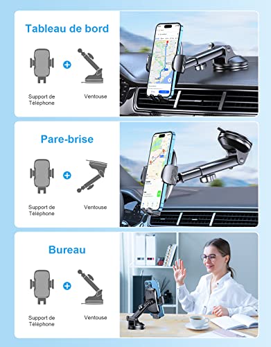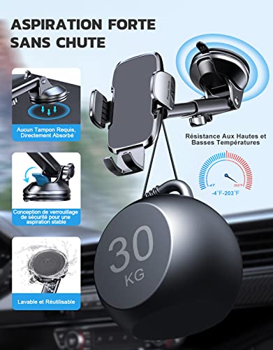 [Puissance d’Aspiration Supérieure] – Le support telephone voiture CIRYCASE est équipé d’un mécanisme de verrouillage à 2 niveaux et de la dernière ventouse en nano gel, offrant 3 fois la puissance d’aspiration du pied de téléphone portable traditionnel pour les voitures. Vous pouvez profiter d’un maintien stable et sûr sur des surfaces lisses. Et si l’aspiration perd son adhérence, rincez simplement la surface collante à l’eau tiède et laissez-la sécher pour une adhérence restaurée. [Protection Imbattable] – Grâce à la technologie d’aspiration de pointe, la porte téléphone voiture s’adapte à la forme de votre téléphone, éliminant tout espace et offrant une protection complète. Le coussinet en silicone sur le bras de serrage garantit que votre téléphone reste sans rayures, de sorte que vous pouvez dire adieu aux soucis des chutes ou des rayures lors de vos voyages. [Entièrement Personnalisable] – Avec des milliers de tests et de raffinements, le support smartphone voiture fournit une rotule rotative à 360° et une ventouse de base, et un bras mécanique qui peut être ajusté à 270 degrés avec une plage d’extension de 12,6cm à 16,9cm. Cela vous permet de positionner le support à votre angle préféré, assurant des lignes de vue dégagées et une conduite sûre. [Opération à Une Main] – L’attache telephone voiture dispose d’un bouton pratique à l’arrière, vous permettant d’ouvrir sans effort les bras de serrage en un seul clic. Et d’une simple pression sur les bras de serrage, votre téléphone reste bien en place. Profitez d’une véritable opération à une main, afin que vous puissiez vous concentrer sur la route à venir. [Compatibilité Universelle] – La fixation telephone voiture convient à tous les smartphones avec un écran de 4,0 à 7,0 pouces, compatible avec l’iPhone 17 Pro/17 Air/17/16 Pro/16 Plus/16/15 Pro Max/15 Pro/15 Plus/15/14 Pro Max/14 Pro/14 Plus/14/13 Pro Max/13 Pro/13/13 Mini/12 Pro Max/12/12 Mini/SE/11 Pro Max/11 Pro/11/XS Max/XR/X/8/8 Plus/7/7 Plus, Galaxy S25+/S25/S24 Ultra/S24+/Note 20 Ultra/S23 Ultra/S22+/S22/S21 FE/S20/S10e/S10 Plus/S9, et plus encore. [Instructions d’Utilisation] 1. Avant d’appliquer la ventouse, nettoyez la surface de pose pour qu’elle soit propre, sèche et sans poussière. 2. Retirez le film protecteur de la ventouse, placez-la sur le tableau de bord, puis tournez-la tout en appuyant fermement sur les bords avec les deux mains pour assurer une adhésion solide. Appuyez sur le bouton de verrouillage et laissez reposer pendant 30 minutes avant utilisation. [Rappel Important] 1. Pour retirer la ventouse, relevez d’abord le bouton de verrouillage, puis soulevez l’oreillette en caoutchouc située en bas pour la détacher. 2. La ventouse est réutilisable. Chaque fois que vous souhaitez changer l’emplacement du support, rincez le dessous de la ventouse à l’eau tiède, séchez-la, puis réutilisez-la. 3. Ce produit n’est pas adapté aux tableaux de bord en cuir.