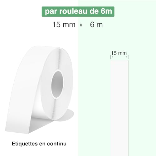 SUPVAN KATASYMBOL E10/E11/E16 2 Rouleaux d’Étiquettes Autocollantes Thermiques ÉTENDUES | 15 mm x 6 m/Rouleau | Noir sur Blanc
