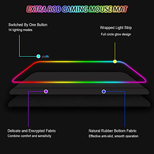 Tapis de Souris Gaming RGB XXL (800 x 300 mm), 14 Effets D’éclairage LED, Étanche, Antidérapant, Résistant à l’usure pour Gamer, Ordinateur, PC