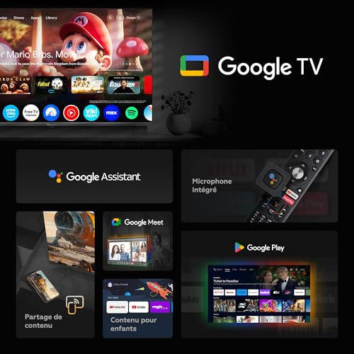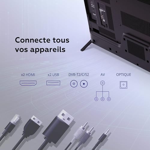 ✅ Écran LED de 32″ (80 cm), résolution 1920 x 1080 pixels (Full HD), pour des images nettes et d’un haut niveau de détail. ✅ Smart TV avec Android 14 GTV, doté d’une intelligence artificielle et d’un assistant virtuel commandé par la voix. ✅ Compatibilité : YouTube, Netflix, Disney+, HBO Max, Prime Video, et toutes les applications téléchargeables depuis le Play Store. ✅ Connectivité : 2x HDMI, 2x USB, entrée vidéo composite AV, sortie audio numérique optique, port d’interface commune (CI), Ethernet RJ45, Wi-Fi et Bluetooth. ✅ Double tuner numérique de deuxième génération DVB-T2/C/S2, permettant de décoder les chaînes via antenne, câble et satellite, ainsi qu’un système de télévision hybride HbbTV.