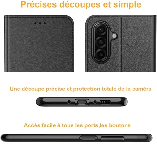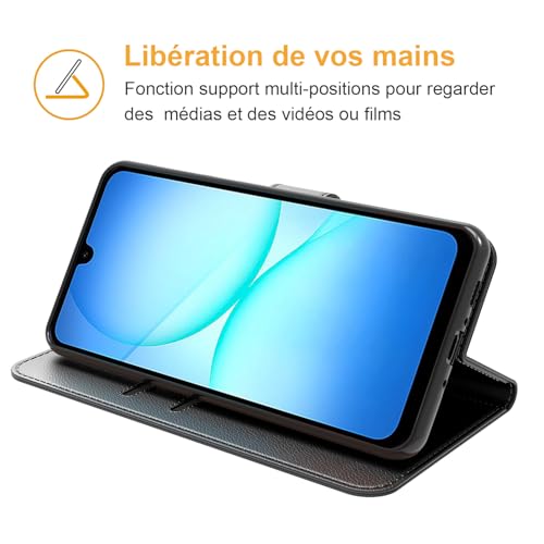 [Compatibilité Parfaite avec Samsung Galaxy A17] Découpes précises pour toutes les fonctionnalités : accès rapide à l’appareil photo, aux boutons et aux ports, sans compromettre la protection [Matériaux de Qualité Supérieure] Extérieur en cuir PU résistant, intérieur en coque TPU souple et antichoc. Votre Smartphone est protégé contre les chutes et les rayures, tout en restant fin et léger [Fonction Portefeuille Pratique] Fentes intérieures pour cartes bancaires, cartes de visite ou titres de transport, ainsi qu’une pochette pour ranger vos billets. Un véritable gain de place au quotidien [Support Pliable Multi-Positions] Le rabat se transforme en support horizontal, idéal pour profiter de vos films, séries ou appels vidéo, sans avoir à tenir votre téléphone en main [Fermeture Magnétique Sécurisée] Le clapet magnétique garantit une protection intégrale lorsque vous êtes en déplacement. Il se replie facilement à l’arrière pour ne pas gêner l’écran pendant l’utilisation