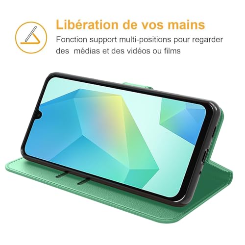 ✅[Compatiblité] Compatible uniquement avec Samsung A16 4G / 5G ,Veuillez bien verifier le model de Votre téléphone avant de acheter. ✅[Qualité] Cette housse portefeuille en Simili cuir PU est frabriquée avec doublure microfibre,pratique et élégant,elle protège votre smartphone dans tous les sens,anti chocs et chutes. ✅[Multifonction] Cette housse possède Plusieurs emplacements pour les cartes bancaires (ticket métro,bus,d’autres carte). ✅[Fonction Stand]Cette housse peut libérer vos mains avec la mode sand vidéo,soutenir votre phone en position horizontale,idéal pour regarder des vidéos et surfer sur internet. ✅[Acces Libre]La fermeture avec rabat magnétique assure la sécurité de vos cartes et billets,et aussi protége mieux lorsque une chute.elle permet d’utiliser tous les boutons,les ports,les capteurs et objectifs de caméra,mais n’affecte pas la protection du téléphone.