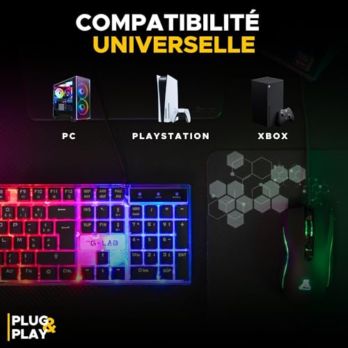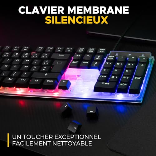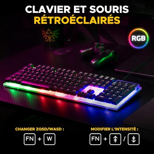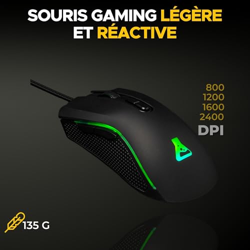 [Pack Gaming Complet]: Le Combo Yttrium est un pack gaming 3 en 1 idéal pour tous les gamers qui souhaitent un équipement complet à prix abordable par tous. Ce pack gaming est recommandé pour les jeux comme Fortnite ou COD. Ce pack clavier souris gamer sera votre meilleure compagnon de jeu. L’ensemble des périphériques du Combo Yttrium sont compatibles sur PC, PS4, Xbox One et Mac et sont garantis 2 ans. En cas de problème, notre SAV vous répondra en français en -24h. [Clavier Gamer Semi Mécanique Rétroéclairé] : Le clavier gamer de ce pack est spécialement conçu pour les gamers exigeants. Chaque touche est réactive, silencieuse, ce qui vous permet de jouer dans des conditions optimales. Profitez de son rétroéclairage LED RGB afin d’illuminer votre set up gaming. Avec ses 105 touches et 19 touches anti-ghosting, ce clavier gaming offre une performance inégalée pour un set up gaming de qualité. [Souris Gamer 2400 Dpi] : La souris gamer incluse dans ce pack gaming est doté de 2400 DPI, ce qui signifie que vous bénéficiez d’une précision extrême pour chaque mouvement. Le rétroéclairage de la souris qui change en fonction du DPI ajoute une touche de style à votre set up gaming, en plus d’améliorer vos performances. [Tapis De Souris Gaming Antidérapant]: Le tapis de souris gaming inclus mesure 300x230x2mm et possède une surface antidérapante. Il garantit une stabilité maximale pour votre clavier gaming et votre souris gamer, vous permettant ainsi de jouer sans interruption. [Plug and Play] : Ce pack clavier souris gamer est prêt à l’emploi dès la sortie de la boîte. Il vous suffit de le brancher à votre PC, PS4, PS5, Xbox One/series, et vous pouvez immédiatement plonger dans l’action sans avoir à vous soucier d’une installation compliquée. C’est le choix idéal pour les joueurs qui veulent améliorer rapidement leur set up gaming.