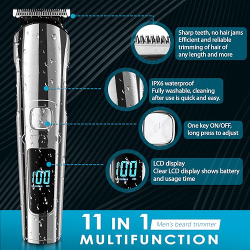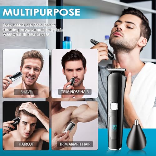 Ensemble D’accessoires Professionnels Complets – tondeuse à cheveux, tondeuse pour le corps, tondeuse design, tondeuse de précision, tondeuse pleine grandeur, tondeuse à poils de nez, micro rasoir, peignes de différentes longueurs*5, peigne à cheveux, support, brosse de nettoyage, câble de chargement, huile lubrifiante, boîte de rangement. Deux Vitesses – la tondeuse à cheveux a deux vitesses, vous pouvez choisir la vitesse en fonction de vos besoins. Tondeuse Cheveux qui est non seulement une tondeuse à cheveux mais également une tondeuse à barbe, coupe n’importe quelle longueur de cheveux. Batterie De Grande Capacité – Charge rapide USB de type C, batterie au lithium puissante pour jusqu’à 90 minutes d’utilisation sans fil après une charge complète. La conception silencieuse et à faibles vibrations offre une manipulation optimale. Les tondeuses à cheveux sont le compagnon idéal en vacances ou en voyage d’affaires. Machine Durable – La lame en acier inoxydable maintient le tranchant pendant longtemps sans tirer les cheveux, durable et haute performance de coupe. coupe de barbe efficace et fiable de n’importe quelle longueur. un contact doux avec la peau pour éviter tout dommage accidentel à la surface de la peau. Écran LCD & Étanche Selon IPX6 – L’écran LED indique la puissance de la batterie et la durée d’utilisation. La conception entièrement lavable permet un nettoyage facile après utilisation. Veuillez nettoyer les tondeuses pour hommes et les garder au sec après l’arrosage.