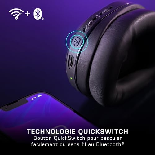 Accédez à la liberté du sans fil – Jouez à vos jeux préférés sur Xbox Series X|S et Xbox One avec une connectivité sans fil 2,4 GHz à faible latence, ainsi que sur PC et appareils mobiles grâce à la connectivité Bluetooth 5.2. Technologie QuickSwitch – Basculez facilement entre la connexion sans fil 2,4 GHz et la connexion Bluetooth grâce au bouton QuickSwitch intégré. Un simple appui sur le bouton vous permet de basculer la source audio et de chat entre vos appareils sans fil et Bluetooth, pour une transition fluide entre les connexions. Meilleure autonomie de la batterie de sa catégorie – Grâce à l’autonomie de la batterie allant jusqu’à 40 heures et à la recharge rapide, vous pouvez bénéficier de longues sessions de gaming sans craindre les coupures. Personnalisation du son en tout lieu – Connectez-vous au logiciel Swarm II pour PC ou à l’application mobile pour iOS ou Android et accédez à une égalisation audio 10 bandes, à des préréglages audio et de microphone, et plus encore*. De plus, vous pouvez facilement mettre à jour le firmware grâce à Swarm II *Certaines fonctions audio avancées disponibles dans le mode sans fil 2,4 GHz peuvent ne pas être prises en charge dans le mode Bluetooth. Fonctionnalité Superhuman Hearing avancée – La technologie Advanced Superhuman Hearing offre les mêmes incroyables avantages que Superhuman Hearing sur le champ de bataille, tout en apportant de nouvelles capacités d’ajustement. Dans l’application Swarm II, alternez entre trois niveaux de préréglage différents et ajustez l’intensité de Superhuman Hearing pour régler le son idéal en fonction de vos jeux.