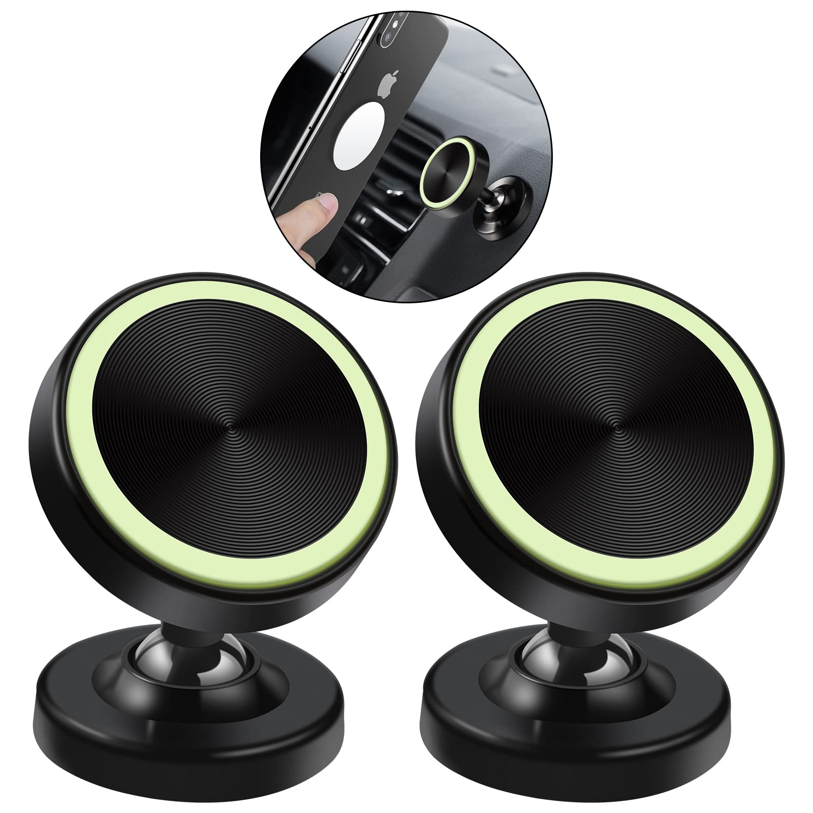 Vinabo 2 Pack Support Aimant Portable Voiture,Magnétique Aimanté Porte Téléphone Rotation 360° Compatible pour Tous Les Smartphone