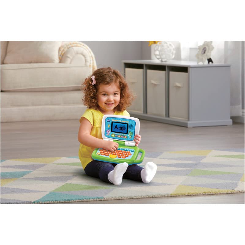 VERSION : Française ÂGE : de 2 à 6 ans, le premier ordinateur des tout-petits qui se transforme en tablette tactile ACTIVITÉS : 10 activités permettent de découvrir les lettres et leur son, les animaux, les chiffres, de recevoir et envoyer des messages en compagnie de Scout et Violette. En format tablette, l’écran devient tactile et l’enfant découvre des jeux interactifs sur différents thèmes : lettres, chiffres, musique 5 MODES DE JEU : Lettres, Nombres, Messages, Jeux et Musique INCLUS : 1 poignée de transport pour l’emporter partout, 2 chansons et 13 mélodies. Volume sonore réglable et arrêt automatique du jouet. Fonctionne avec 3 piles LR6 fournies