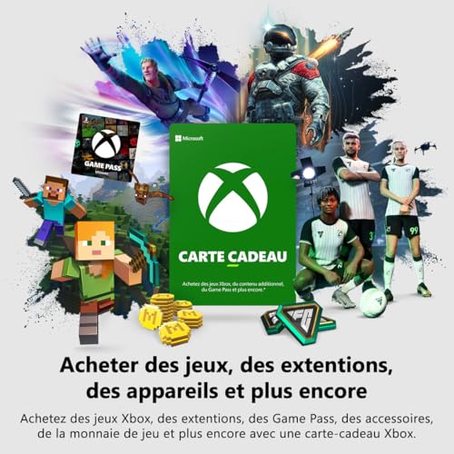 Achetez une carte-cadeau Xbox pour les jeux Xbox, les extensions, l’offre Game Pass, les manettes et plus encore sur consoles et PC Windows Choisissez parmi des milliers de jeux, qu’il s’agisse des jeux favoris rétrocompatibles ou des dernières versions digitales prêtes à l’emploi Prolongez l’expérience de vos jeux préférés avec des extensions et de la monnaie virtuelle de jeu Améliorez votre jeu avec une manette sans fil Xbox, ou jouez comme un pro avec une manette sans fil Xbox Elite Series 2 Achetez un abonnement Game Pass et soyez le premier à jouer à de nouveaux jeux dès le jour de leur sortie, de plus, profitez de centaines de jeux exceptionnels avec vos amis sur console, PC et cloud Idéal comme cadeau à offrir à vos amis