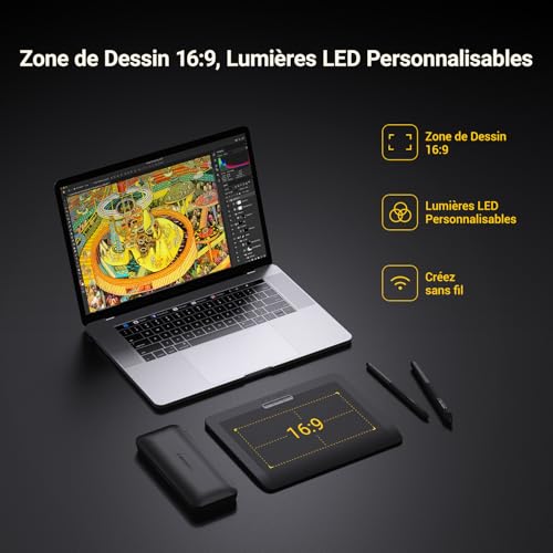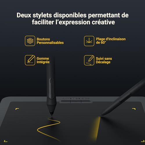 【Tablette de dessin professionnelle】 La tablette de dessin professionnelle Xencelabs est conçue avec la participation d’artistes parmi les plus réputés du secteur. Un ratio 16:9 de la zone active correspond exactement à la plupart des moniteurs standard de l’industrie. Les tablettes à dessin sont largement utilisées dans diverses domaines : l’enseignement, la conception graphique, la conception de jeux vidéo, l’animation 2D, l’animation 3D, le design industriel, etc. 【Deux stylets sans Pile avec étui et accessoires】 un stylet de 3 boutons et un stylet fin de 2 boutons, avec 8192 niveaux de pression et 60 degrés d’inclinaison, pratiquement aucune latence, vous offrant une précision et un contrôle ultimes pour rendre les lignes plus lisses et plus naturelles. 【Installation facile】La tablette graphique pro Xencelabs est une combinaison parfaite d’un périphérique d’entrée avec un pilote moderne et intuitif. Pratique et facile à utiliser, se synchronisant sans effort avec votre système d’exploitation. Fonctionnant particulièrement bien avec les applications de dessin suivantes : GIMP, Krita, Inkscape, Adobe Photoshop, Illustrator, ArtRage, Sketchbook, Substance Painter, etc. 【Portable & Compacte】: Seulement 8 mm, la tablette de dessin numerique Xencelabs est plus fine que de nombreuses autres tablettes graphiques. Trois touches de raccourcis pour un accès facile et moins d’encombrement. L’étui à stylets et accessoires est élégant et bien pensé. 2.5 heures seulement de recharge pour l’utiliser jusqu’à 16 heures en continu. 【Configurations requises pour tablette de dessin】Windows7 ou version supérieure, Mac OS X 10.12 ou version supérieure, Linux. Connexion sans fil ou par câble nécessite un port USB Type-A (l’adaptateur Type-C inclus), un accès Internet pour télécharger le pilote.