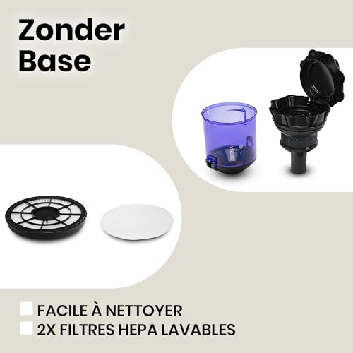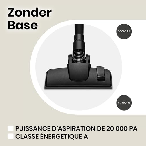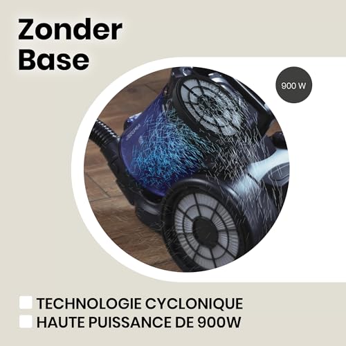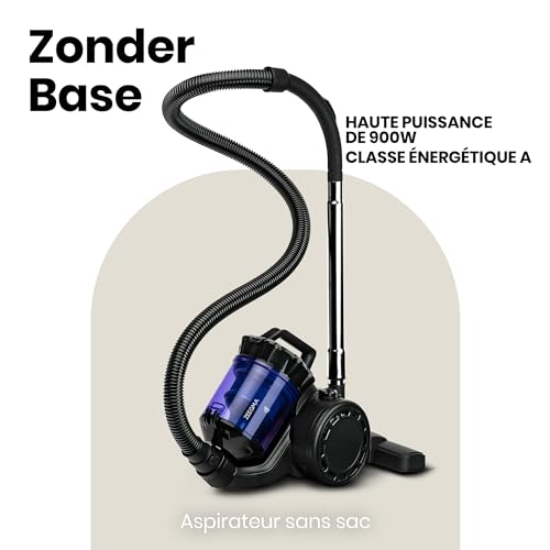 Zeegma Zonder Base – Aspirateur cyclonique sans Sac 20 000 Pa, 899 W, réservoir 2,5 L, 2 filtres HEPA lavables, Classe A, Mini Brosse Turbo Incluse, 5 Accessoires (ZONDER Base)